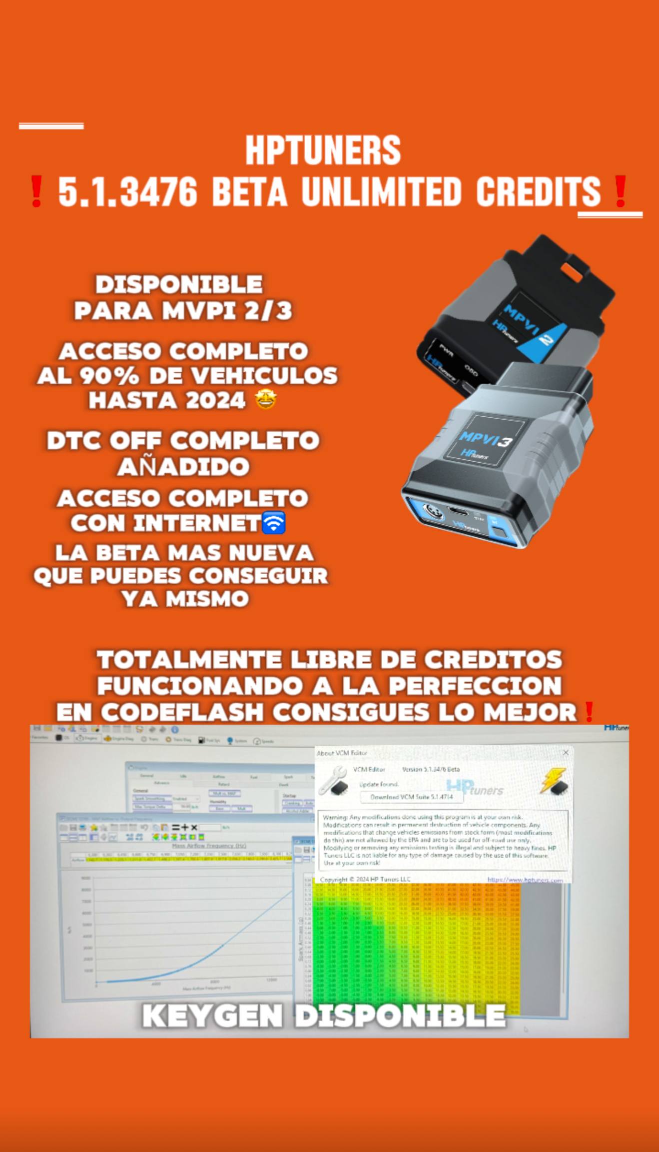 Es una version Beta te permite tunear el 90% de los vehículos de la lista de hptuners, puedes tuner vehículos como Corvette +2020, Ford explorer +2020, Ford F150 +2018 y muchos más. Hemos confirmado el funcionamiento perfecto en la mayoría de los vehículos 2024 y anteriores. Le añadimos DTC off libre de emisiones, eres libre de quitar DTCs como catalyst, O2 sensors y más, Esta version está disponible para su instalación o keygen. La mejor version que encontraras al momento.